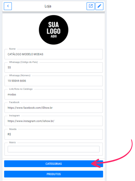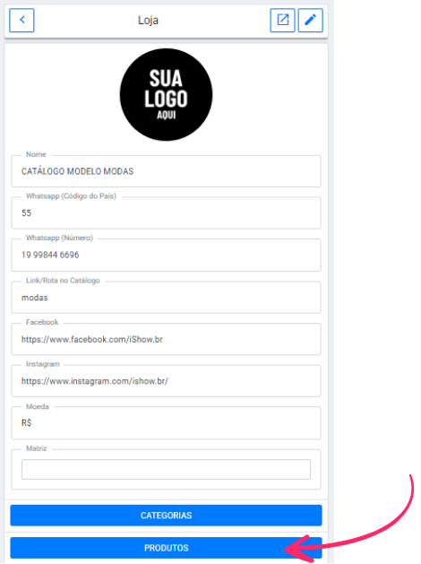 - Clique no "olhinho azul" para acessar o seu catlogo.